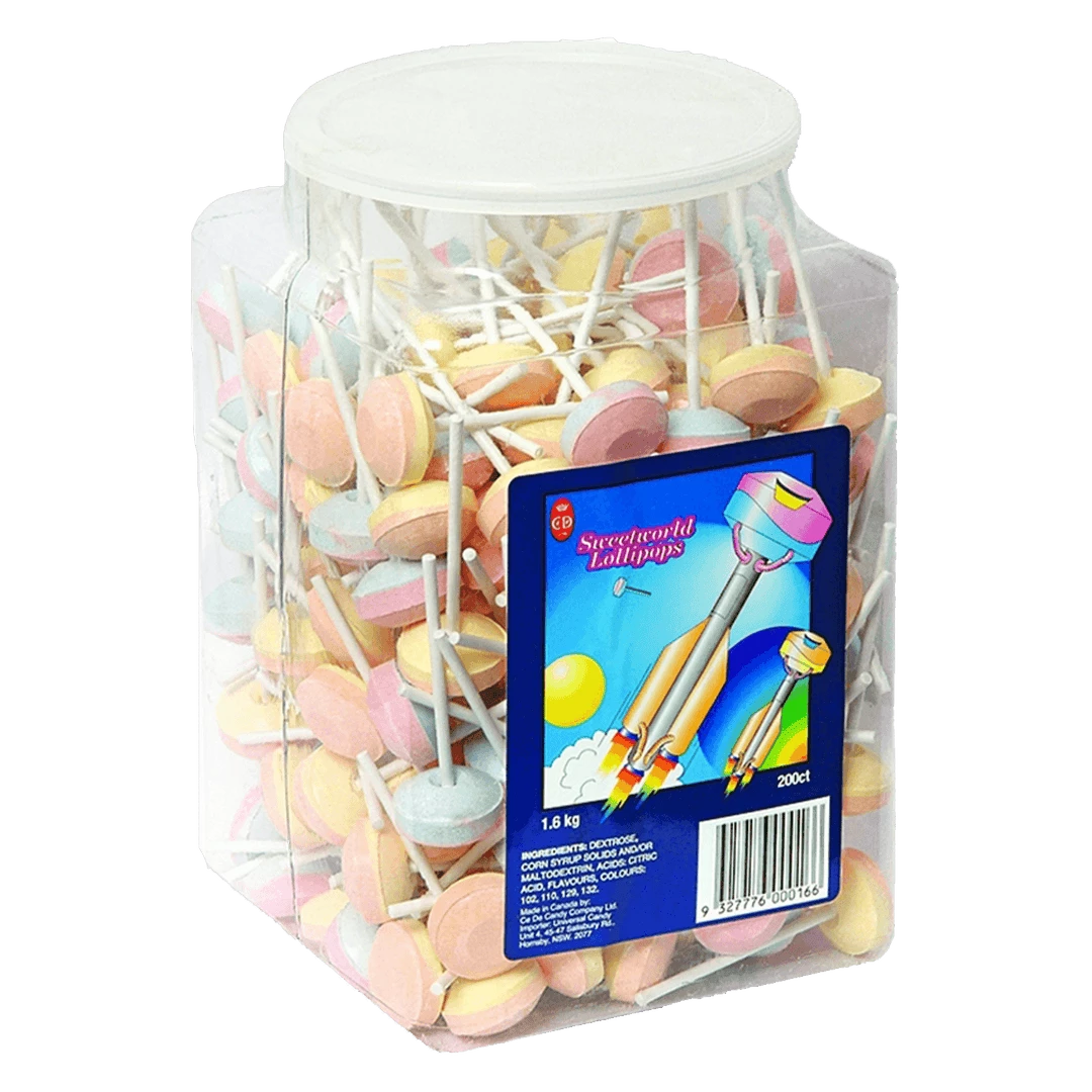 Sweetworld Lollipops can be purchased individually or by the tub. There is 200 lollipops in the 1.4kg tub.