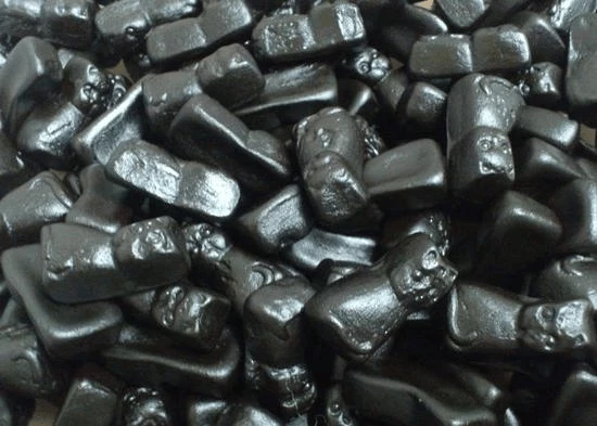 Ingredients: Sugar, Glucose Syrup, Modified Starch, Gelatine, Liquorice extract, Colour (Caramel), Ammonium Chloride, Flavours, Vegetable Oil (Coconut), Glazing Agent: Beeswax.