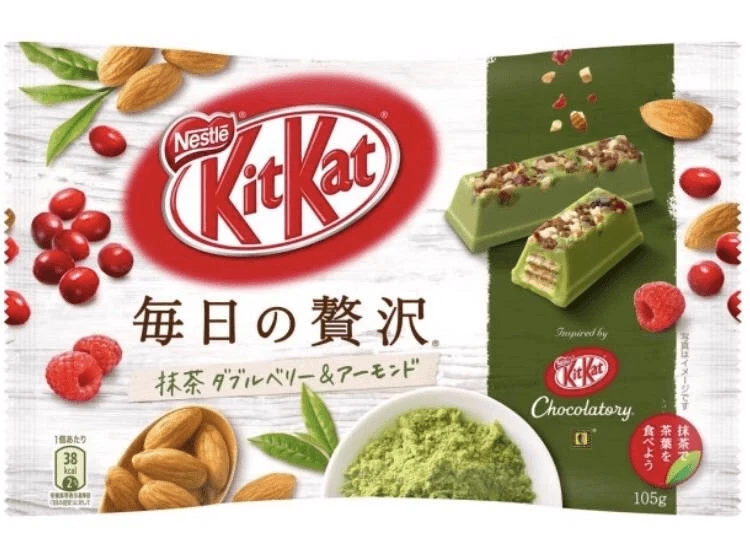 Japanese Kit Kat for those who like luxury, and 2 kinds of berries with Almonds and Matcha.