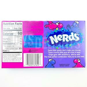 Dextrose, Sugar, Malic Acid, Less than 2% of Corn Syrup, Natural Flavours, Carnuabe Waz, Colour Added: Carmine Colorur, Blue 1 Lake, Blue 2 Lake, Red 40 Lake. May contain Egg. Produced with genetic engineering.