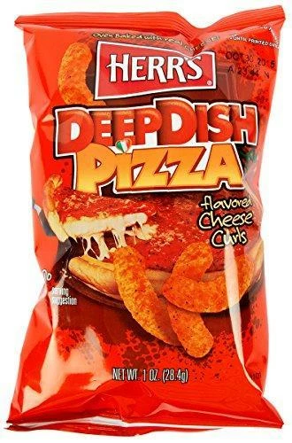 Pizza? Cheese curls? Together? That’s right!! Herr’s Deep Dish Pizza Cheese Curls change the cheesy snack game by combining two of the world’s greatest gift to us mere humans and bringing us one of the most deliciously delectable snacks known to man. Try a bag today!