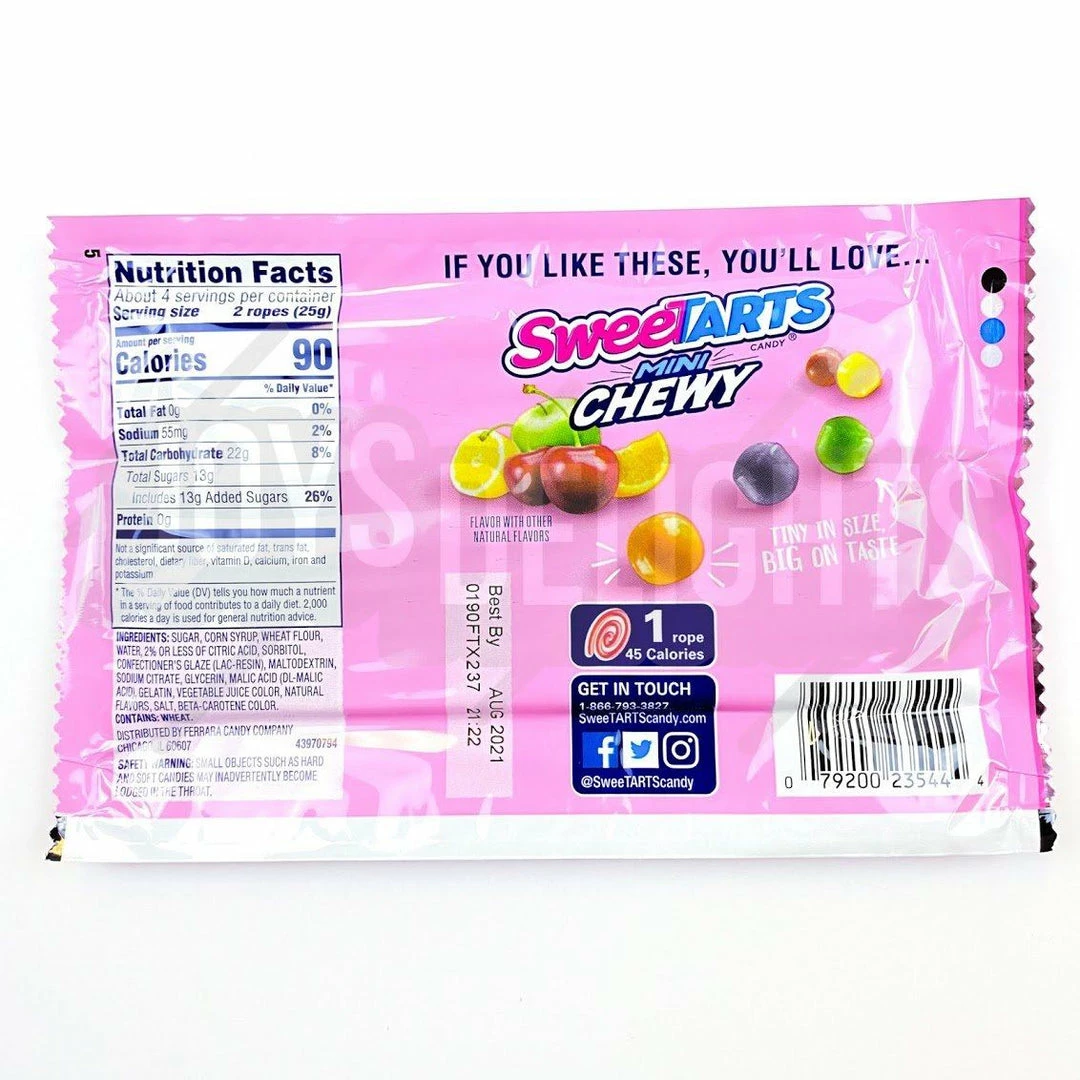 SweeTARTS Cherry Punch Soft and Chewy Ropes® take the classic flavor fusion a step further—creating bendable fun that’s licorice and SweeTARTS all in one. Chewy with a fruit-punch filling, SweeTARTS Ropes® explodes with a mouthwatering maze of texture and taste that makes candy lovers go crazy.